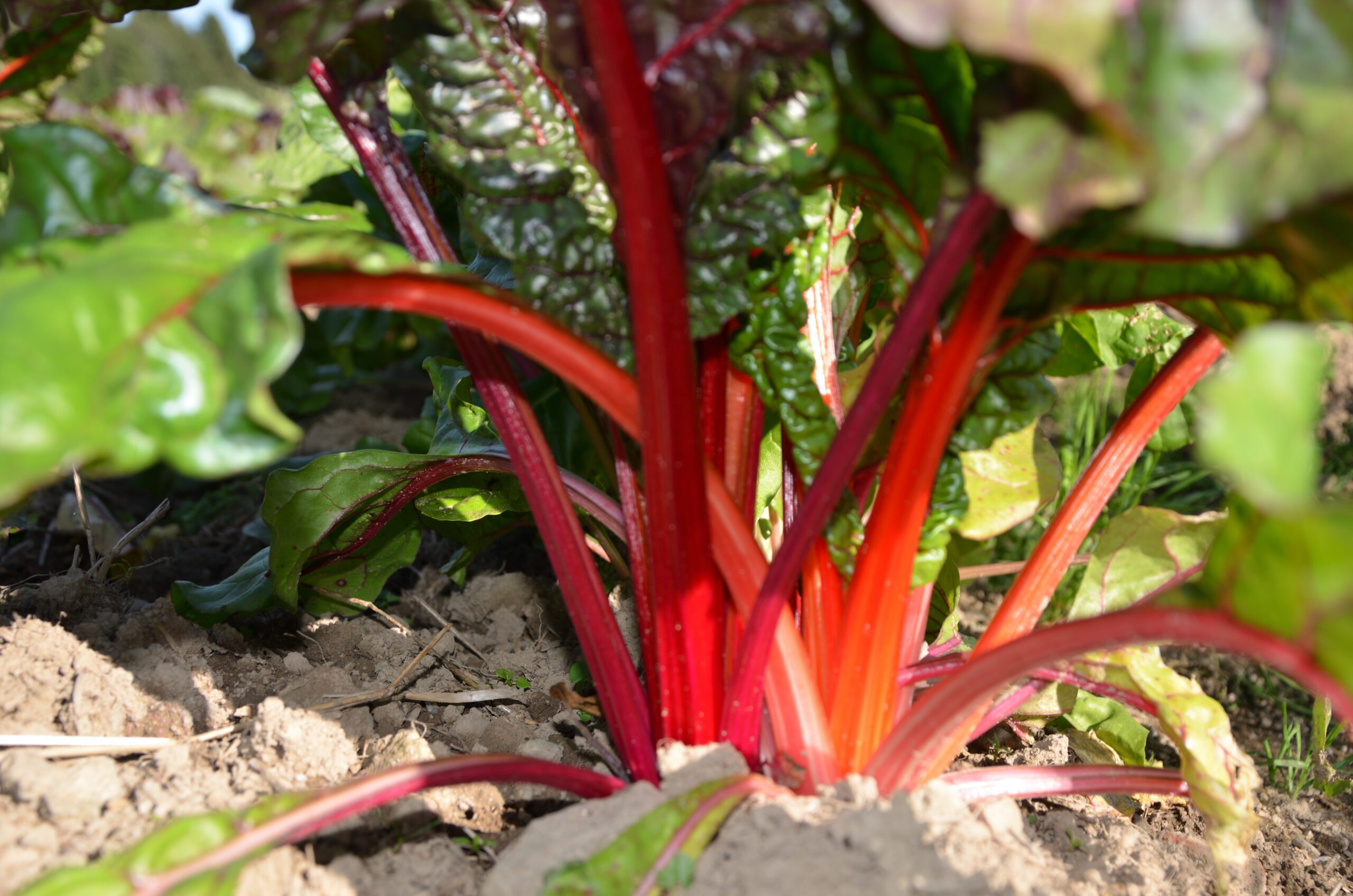 MangoldBunter Rainbow-Mangold, frisch und zart geschnitten. Es ist der zweite Aufwuchs des späten Satzes…