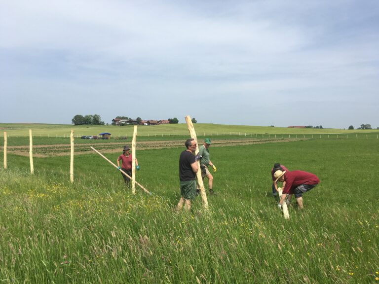 Unser Wildschutzzaun wurde heute nach einer super Gruppenleistung des Ackerteams, vertreten durch Dieter, Iris, Jürgen, Krisztina, Oliver und Walter und durch die fantastischen Fachleute, Conni und Hans, die uns vom Maschinenring vermittelt wurden, fertig gestellt. Montagvormittags haben wir die Zaunpfosten…